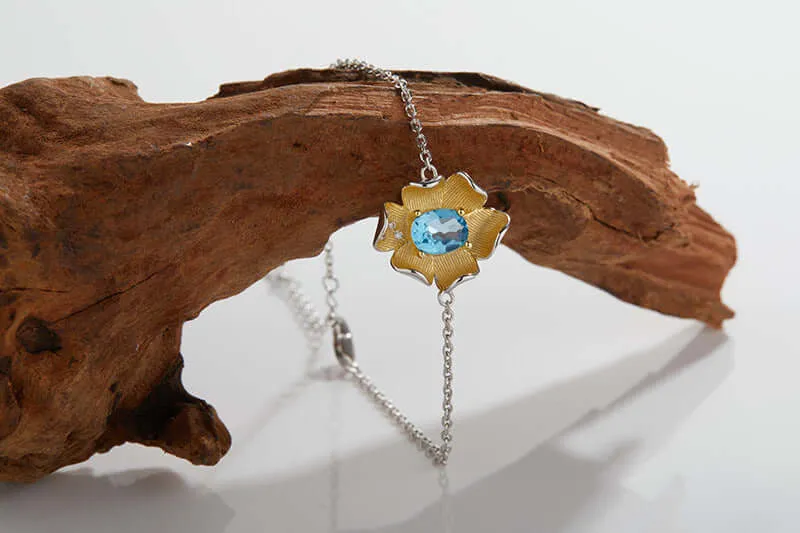 Unleash your daring side with our 925 Silver Flower Natural Topaz Bracelet. Crafted from the finest silver and adorned with beautiful natural topaz, this bracelet exudes elegance and sophistication. Make a statement and stand out from the crowd with this stunning piece, perfect for any occasion. Take a chance and add it to your collection now!