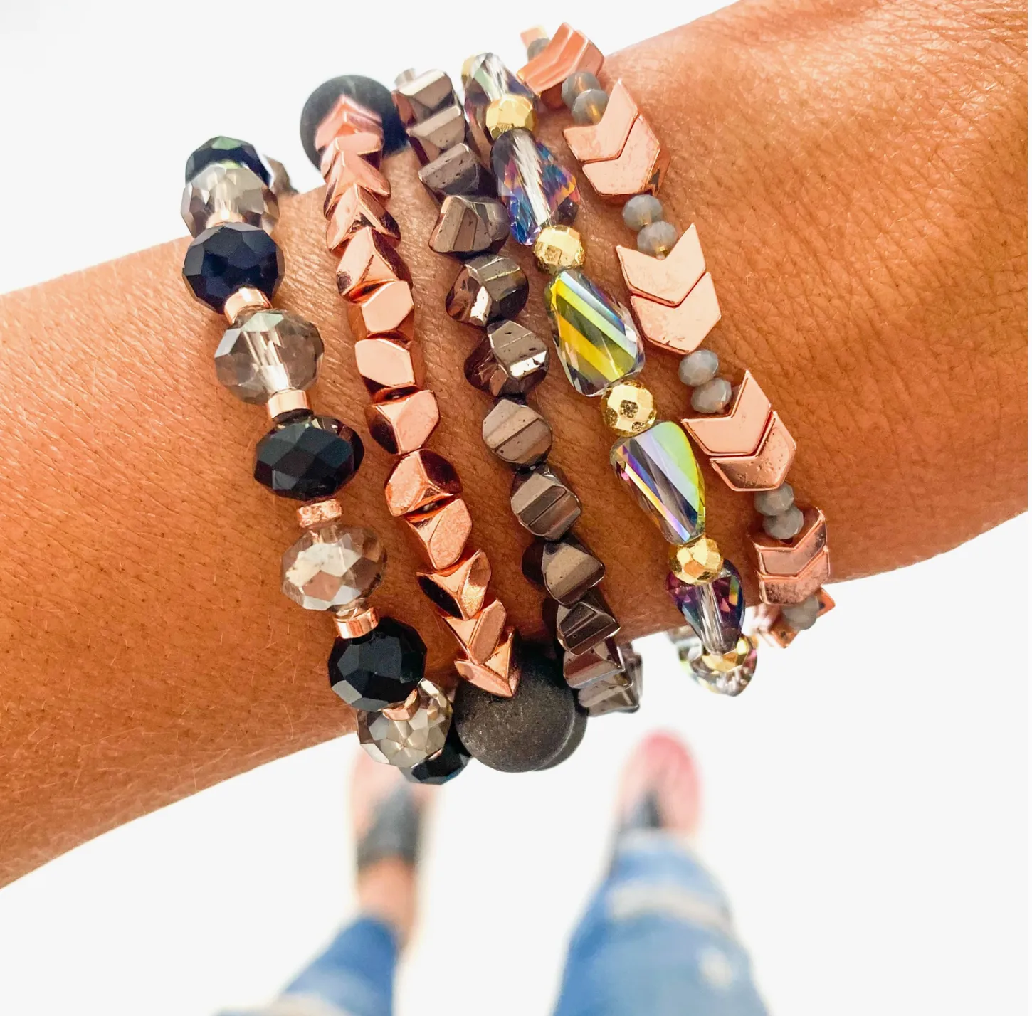 - Each bracelet is made of the finest crystal glass beads, hematite, semi-precious stones, and natural stones to create longevity and a beautiful sparkle