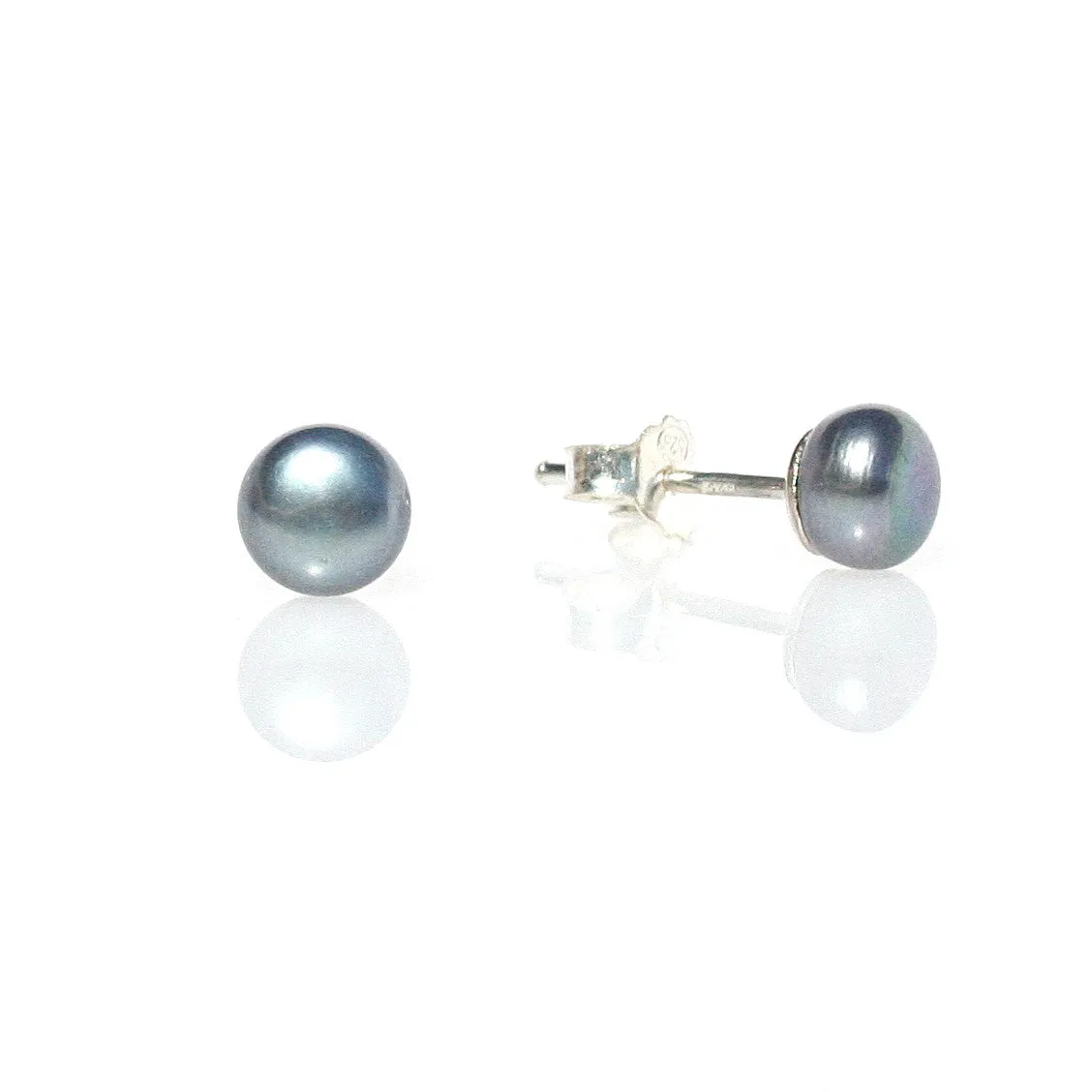 Classic Black Pearl Stud Earrings with Sterling Silver Posts. This size is ideal for young children or for a dainty look