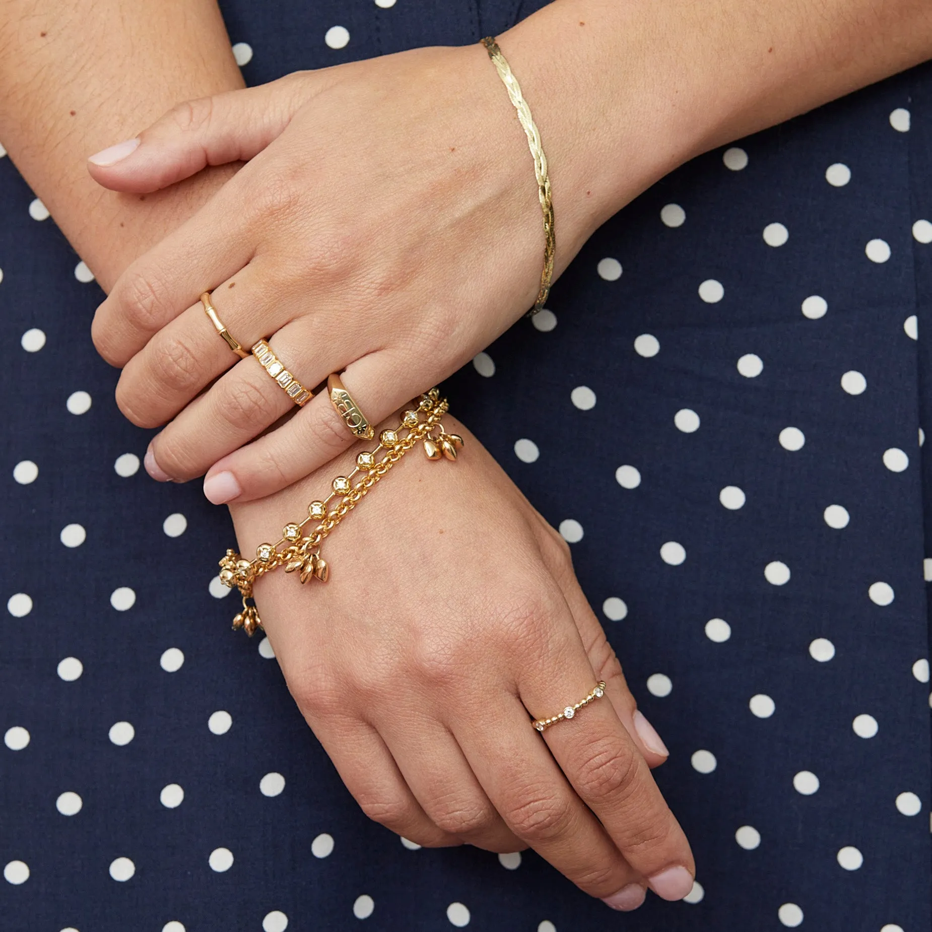 A classic staple piece - times 3! Our Braided Herringbone Bracelet adds the perfect amount of endless shimmer. For the minimalist who still appreciates a liquid golden layer. Also available as a .