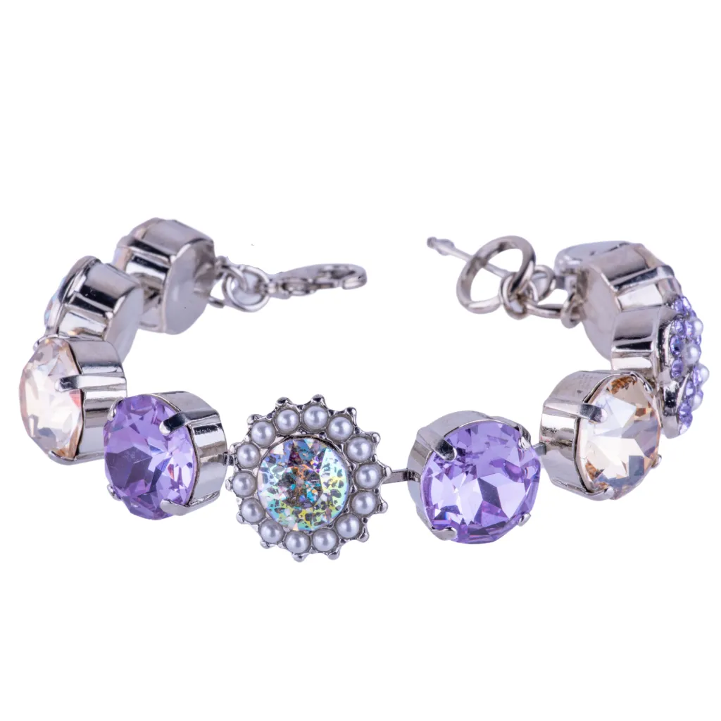 - This bracelet features the largest sized (15mm) round crystals and is approximately 6.5 inches long with a 1 inch extender and a lobster claw closure.