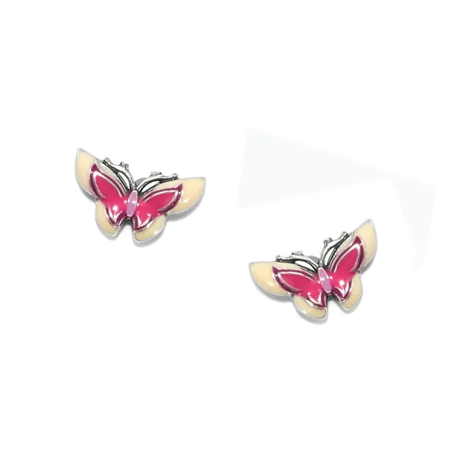 The pretty hues of cherry blossoms decorate butterfly wings on these earrings with hand-enameled artisan detailing. A delicate and feminine accent to whatever you wear.