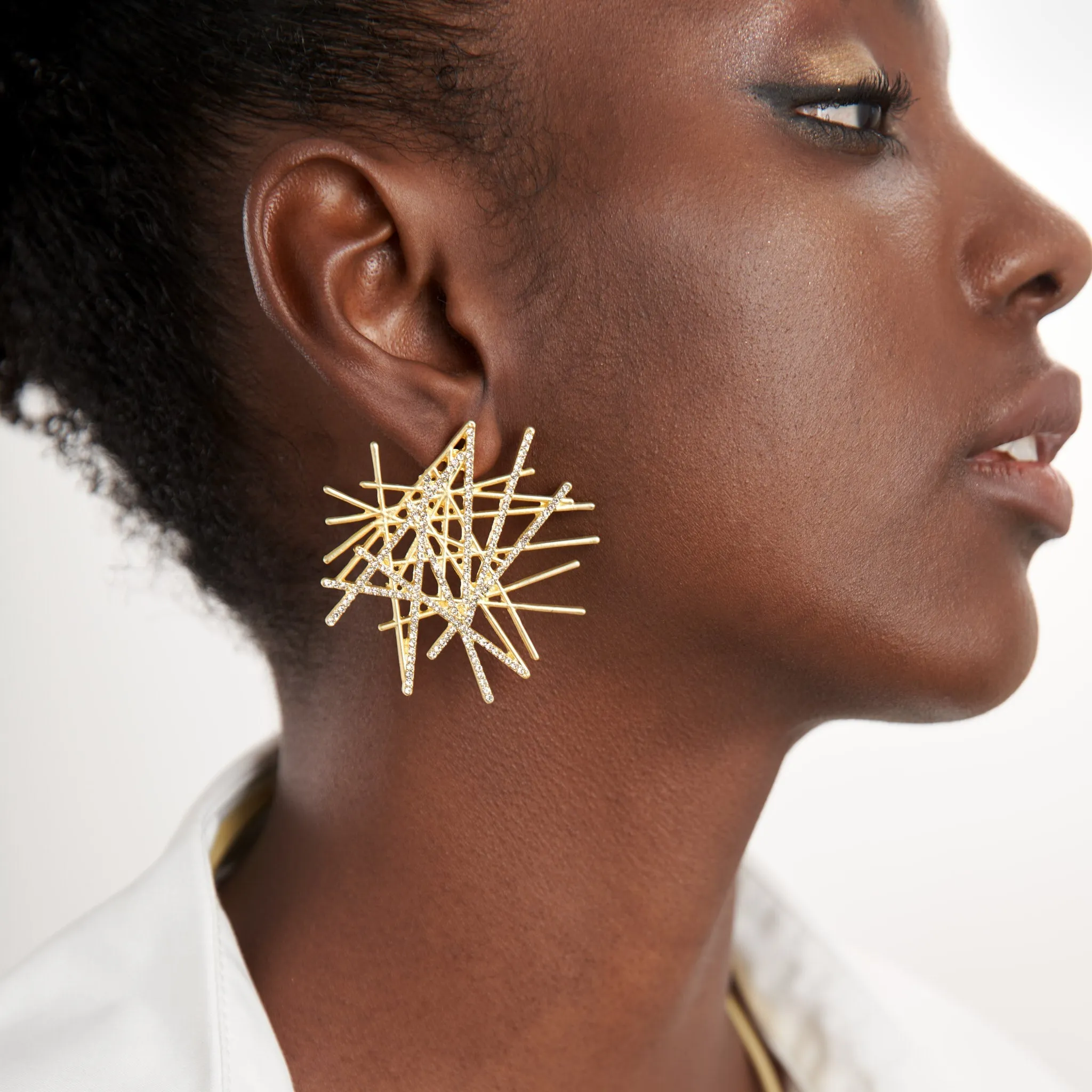 Captivating and bold, the Origami Statement Earrings in Soft Gold are the conversation piece. Designed to remind you that there is beauty in life even when it appears to be chaotic, our thoughtful hint of sparkle represents an inspirational glimmer of hope. Featuring an abstract linework design encrusted in clear crystals, these earrings are the perfect mix of dazzling and dainty. Worn with jeans and a tee for a classic vibe or with a little black dress for a dash of sparkle, this pair is sure to be a classic.