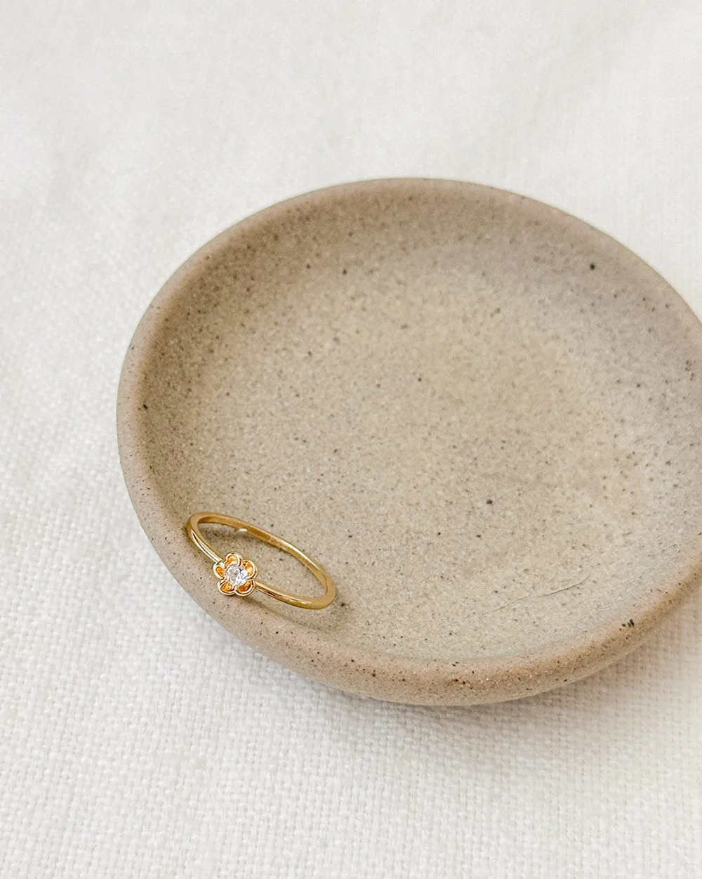 Delicate and minimal feminine ring with charming flower accented with rhinestone center.