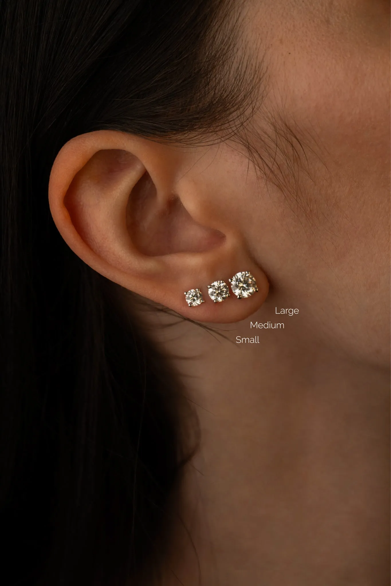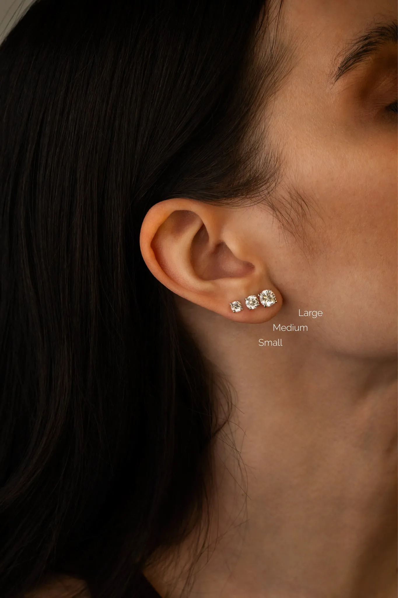 These beautiful and bold diamond studs are the perfect addition for a big sparkle to your everyday look. If you're thinking of investing in your first pair of diamond earrings, the classic diamond studs are perfect to start with.
