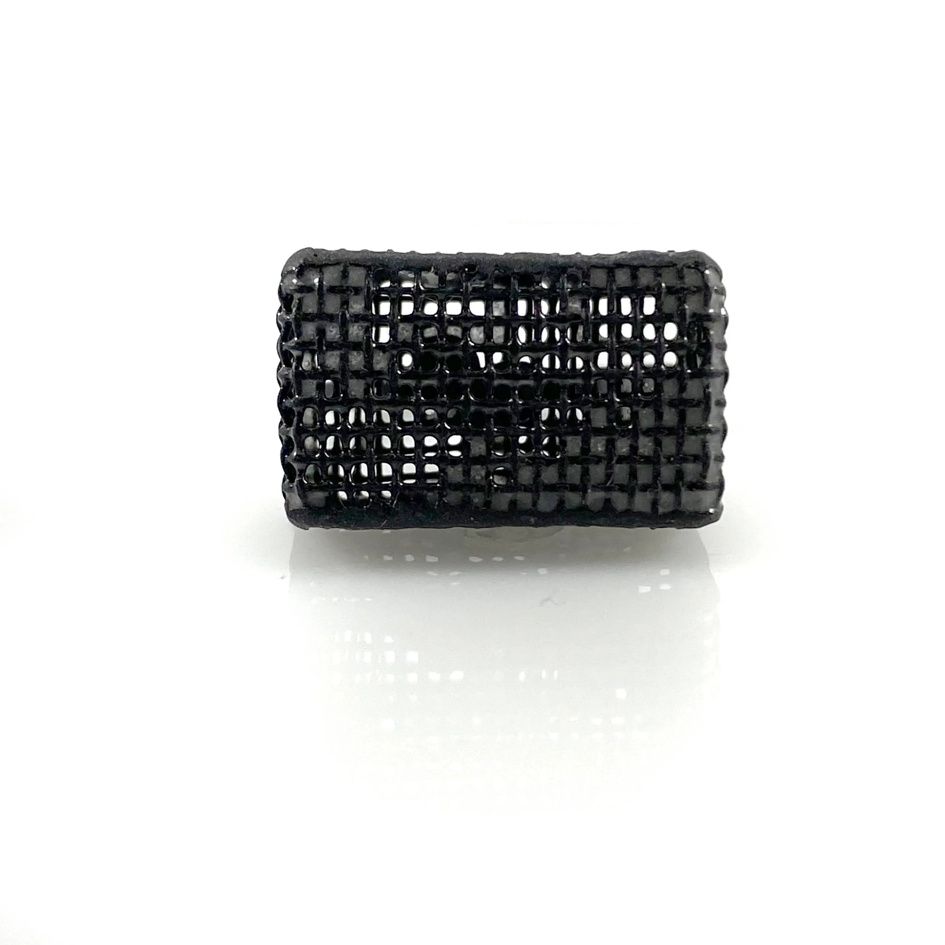Durable cocktail ring is made from steel mesh and liquid enamel.